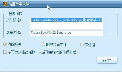今天升级了光影魔术手为0.29版本,但是瑞星老是提示病毒,安装过程也提示,出现下面这个提示,不知道是不是误杀