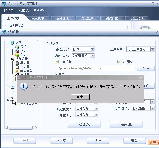 [监控问题] 再次安装瑞星防火墙,不能正常启动服务