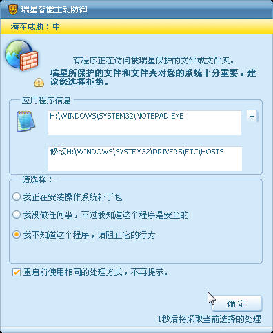 这里并不是瑞星对狙剑没有任何防御,而是我一路绿灯让狙剑可以在当前系统可以正常运行。