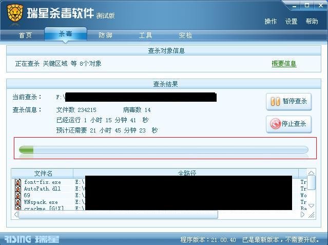 回复:全盘杀毒 查杀百分比问题