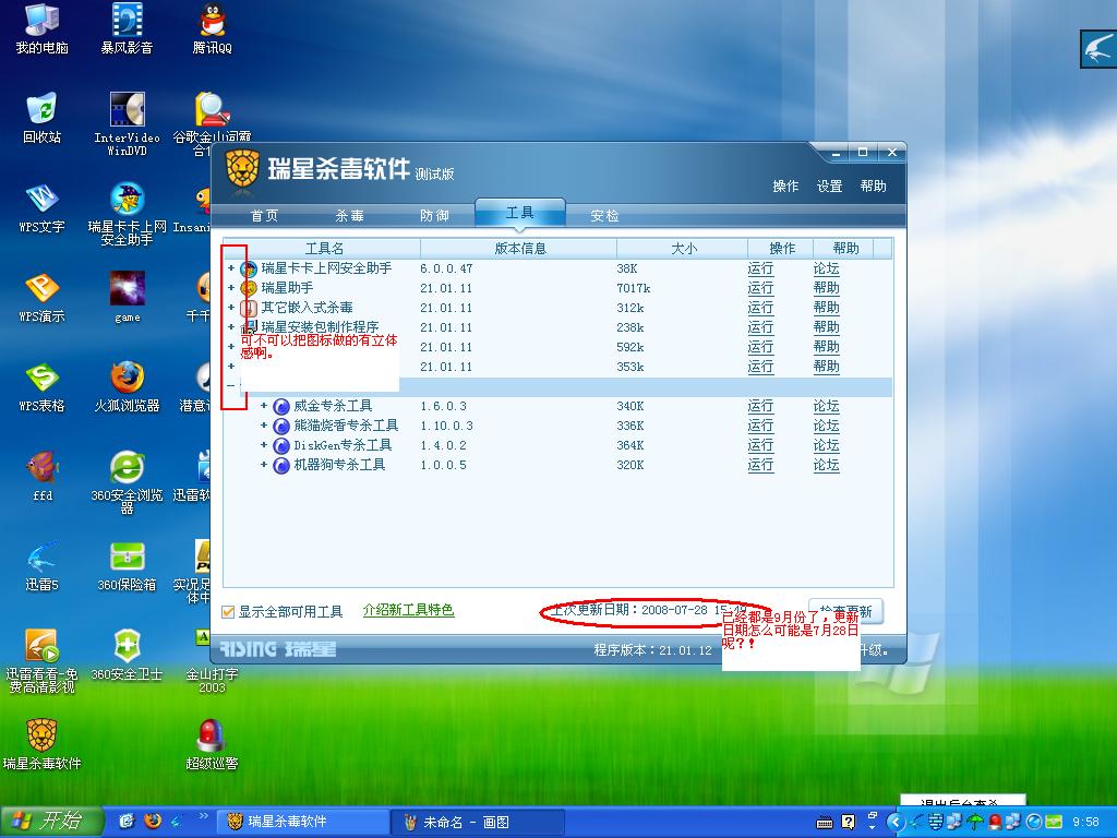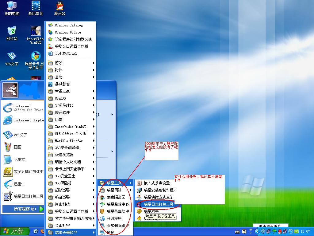 帐号保险柜已从09版里取消,日志打包工具是测试版用来收集瑞星异常信息的,此功能暂时不可以使用。
