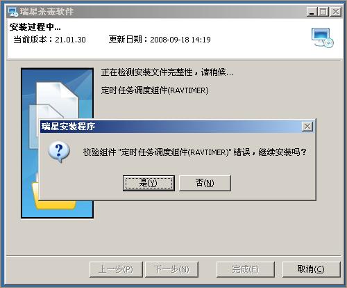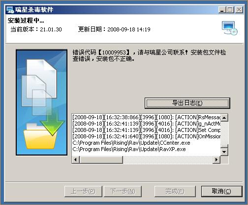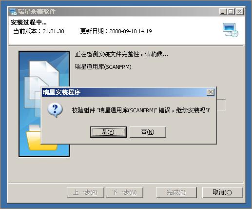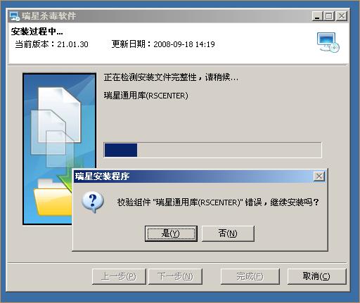 问题现象:升级安装过程中提示出错!忽略后升级完毕,修复时也同样出现这种错误提示!