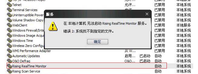 手工启动瑞星实时监控服务,提示系统找不到指定文件。可见之所以会出现安装错误,那是因为文件根本就没有复制进来,或者无法复制进来。