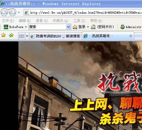 在浏览新浪网的博客时出现,有看其它网页时也有这一现象,网页浏览时无故打开多个网页,且无法关闭打开的网页,如图所示,只有重新启