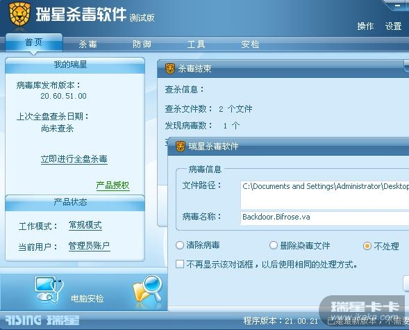 瑞星软件版本:21.60.51.00