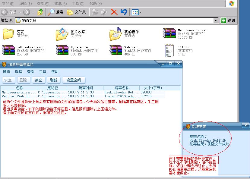 回复:病毒扫描结束,无法删除包含报告有毒的压缩文件(截图)