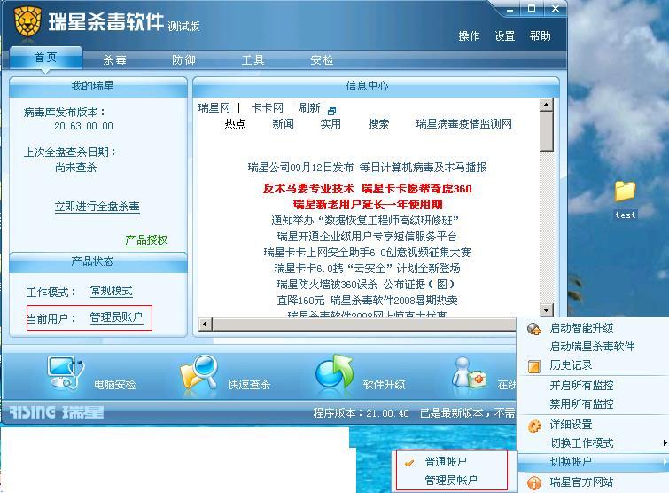 问题现象:界面左下角有个当前用户,可以进行切换,但是无法使用,点了根本不管用,通过点小雨伞菜单中的切换,雨伞中的状态切换成普通用户,但界面中的当前用户依然没变。