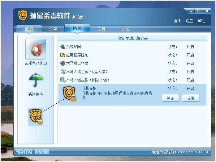 所以建议 把瑞星自我保护单列出来 占位置这样也好看些