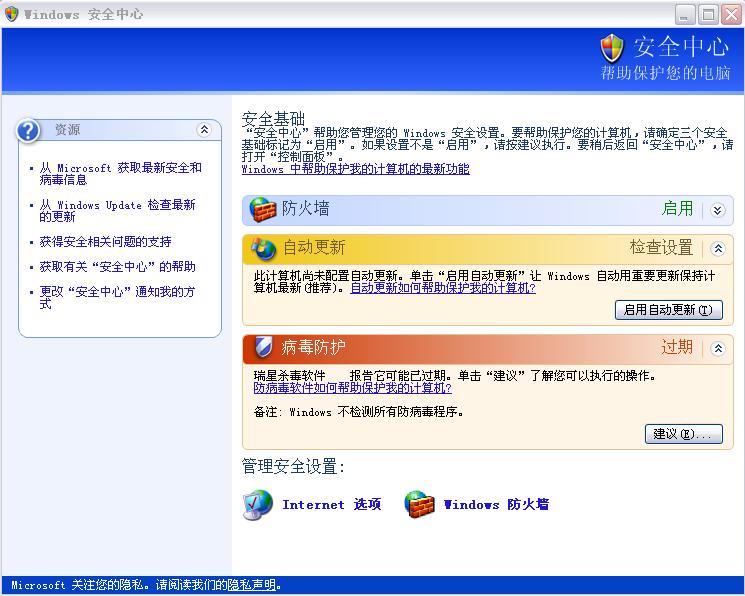 出现以上的问题时,我升级都说是最新的版本了,是不是瑞星杀毒软件和防火墙与windows 安全中心有冲突啊?