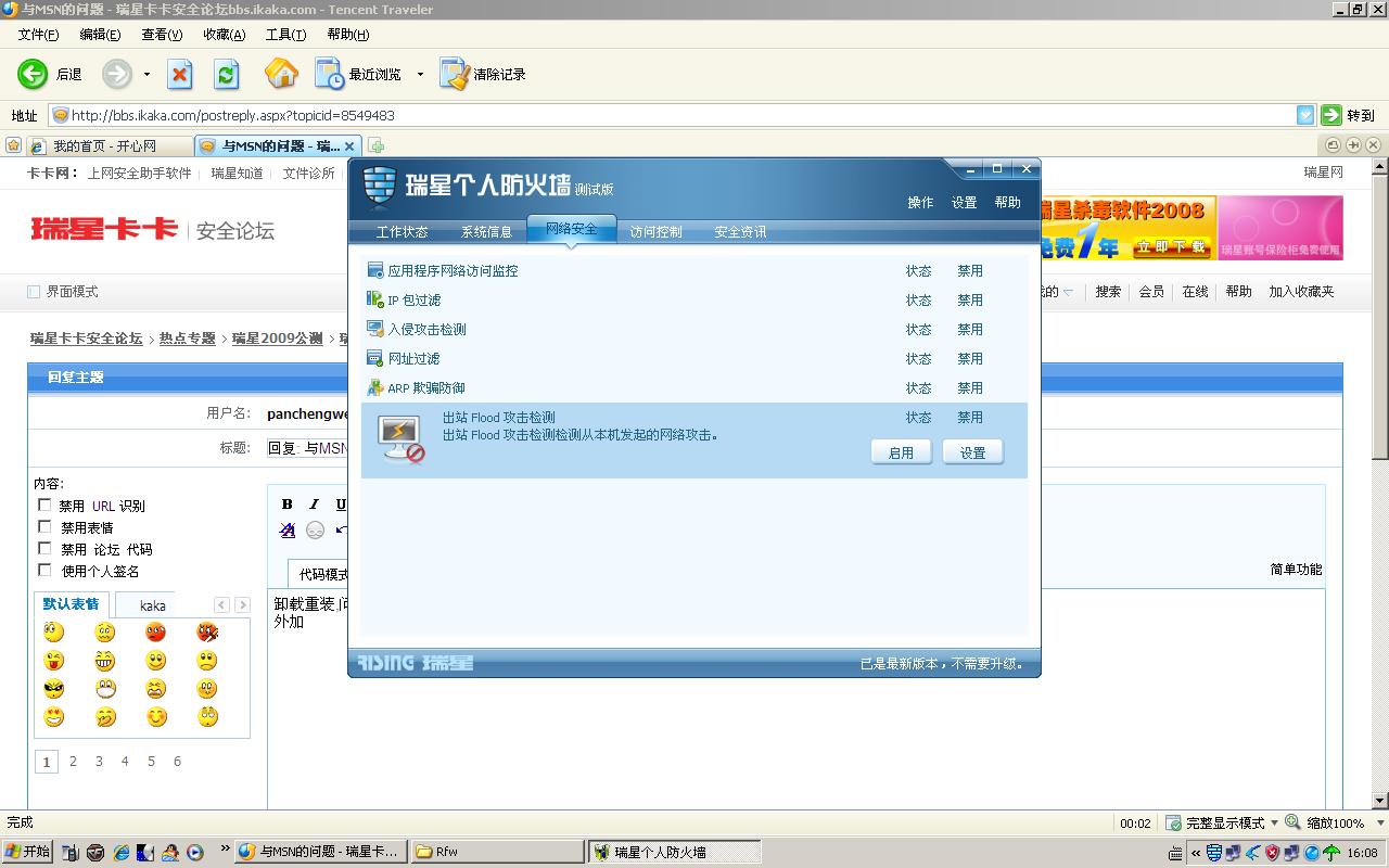 问题前操作:使用MSN 9测试,连续多次防火墙检查组件,重复相同选项对话框N个,形成闪烁状(当时为21.01.21)
