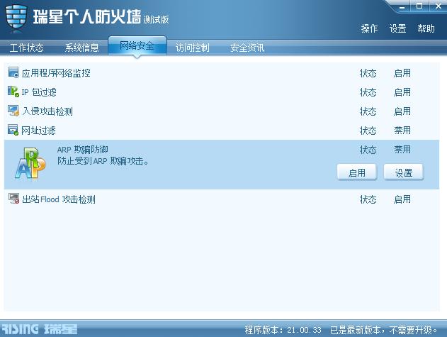 瑞星软件版本:瑞星防火墙 20.00.33