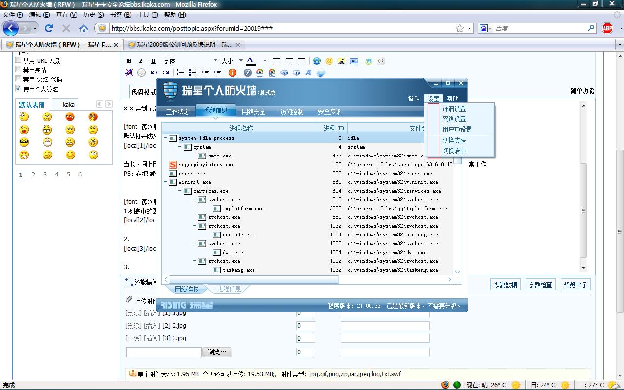 刚刚弄到了瑞星防火墙2009版本,升级后进行了测试,发现如下问题
