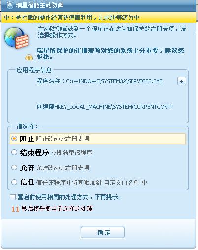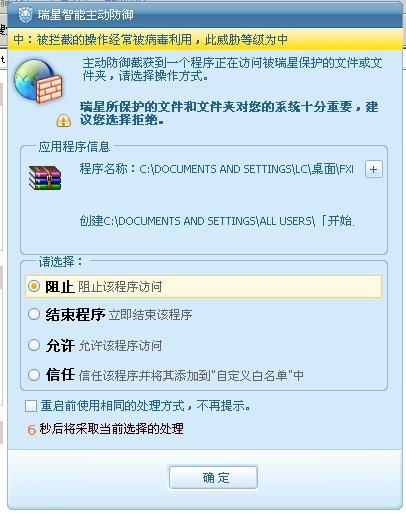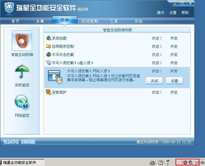 瑞星设置:系统加固:高 木马攻击拦截:高