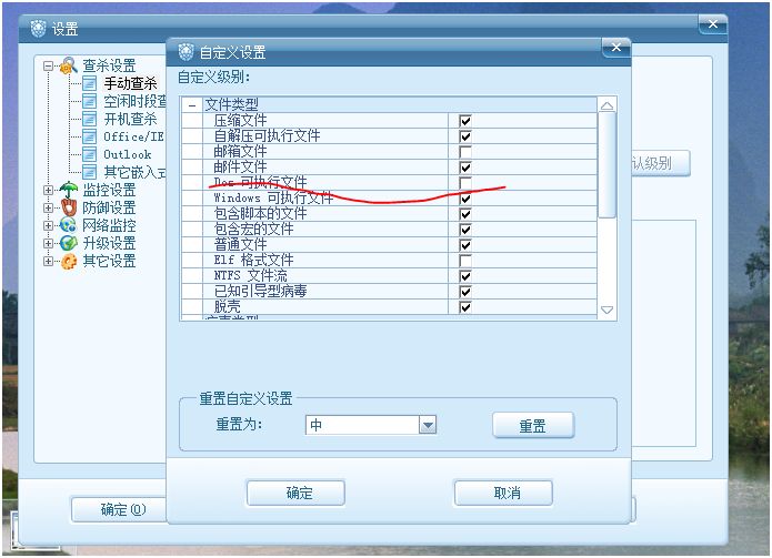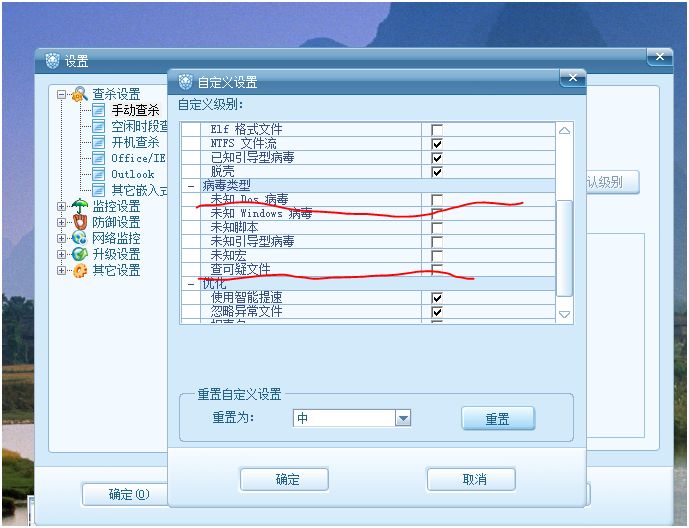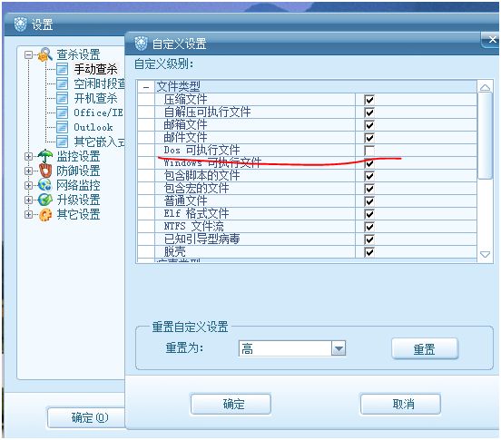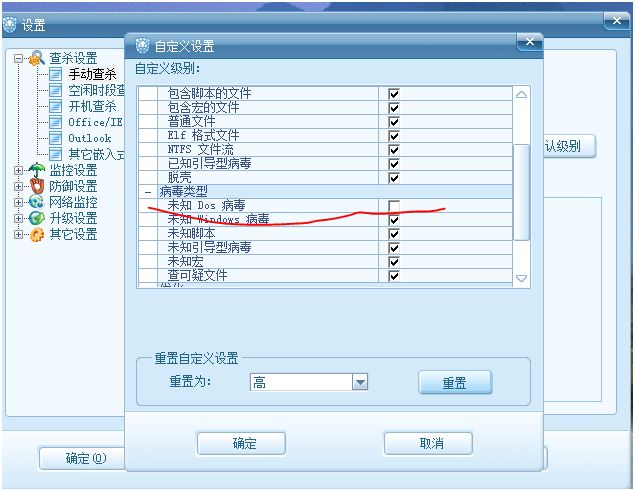下面是没有勾选查杀DOS的 但勾选未知病毒的图