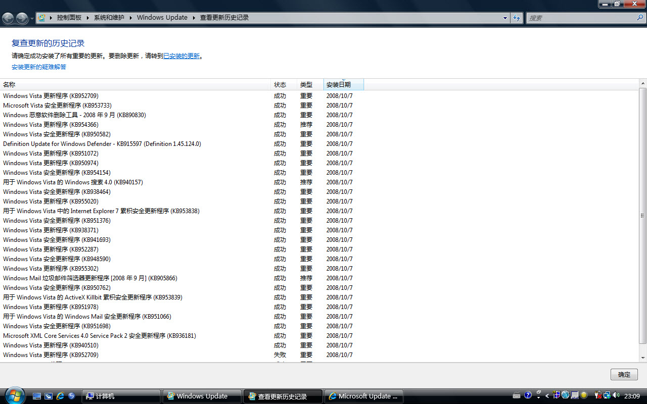 本人是十月一号买的笔记本,机子上面装的是联想自带的正版vistasp1软件,补丁打到八月份。安装瑞星,系统自动更新补后出现。