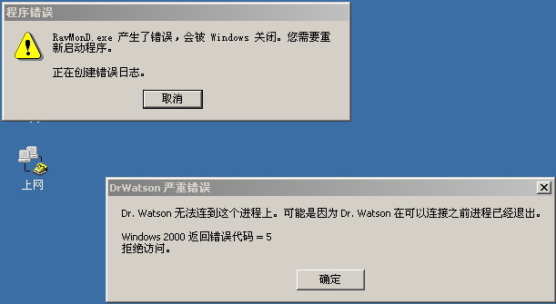 问题现象:RAVMOND。EXE 程序错误! Dr.Watson严重错误码 更改系统出现问题前的操作步骤:改了系统服务!问题能否复现:必填 一直出现