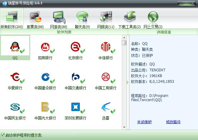 我一打开电脑,瑞星全功能自动运行了,接着我运行了QQ程序,请问,此时我的QQ是否在“账号保险柜”的保护中?