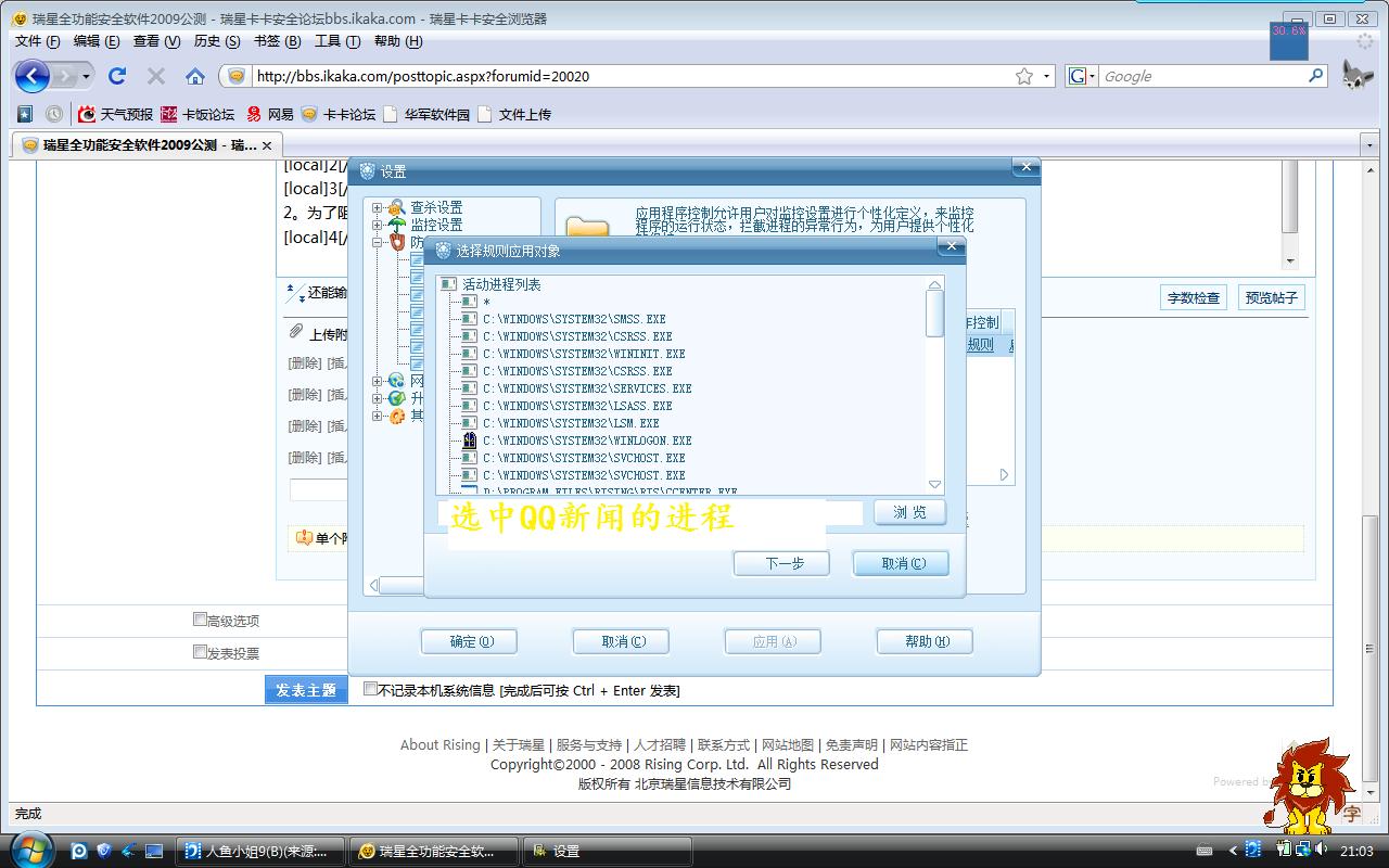 用ris的主防保护了卡卡的文件和阻止了qq新闻的弹出。异常---无效