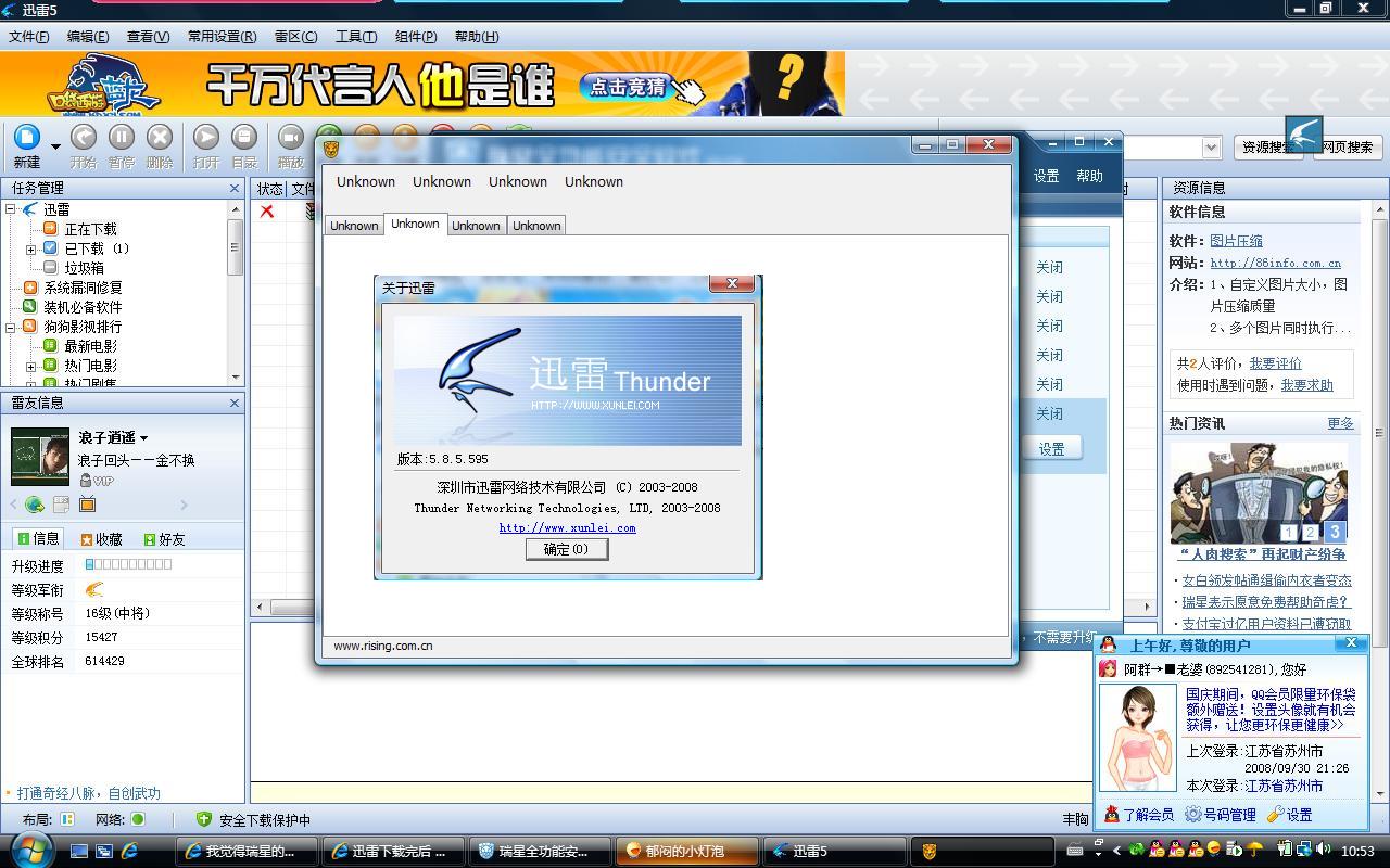 可能是迅雷调用瑞星杀毒程序出错(但是也不回出现unknown界面啊,肯定是瑞星本身问题)