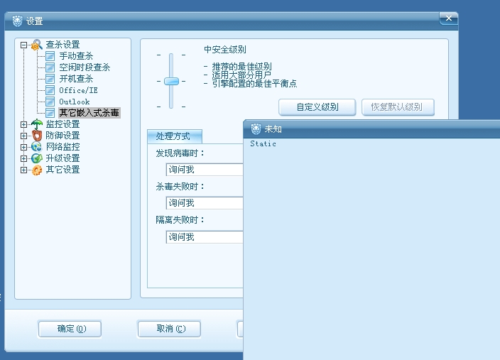 [界面问题] 其他嵌入式杀毒自定义级别设置错误