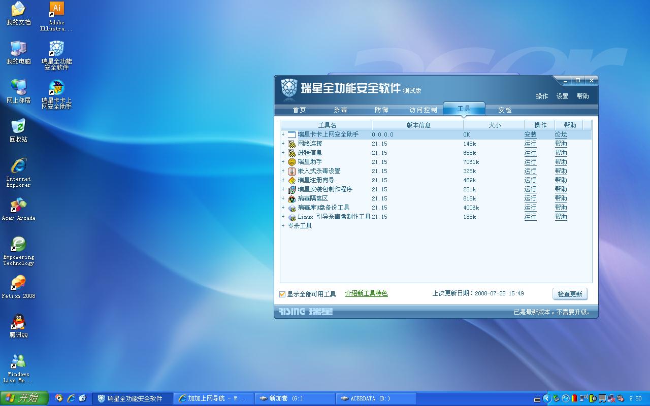 出现问题前的操作步骤:打开瑞星全功能安全软件,选择工具就可以看到里面每一行开头就有一个“+”,希望这个符号能改进一下,因为不是很美观,没有08的好看