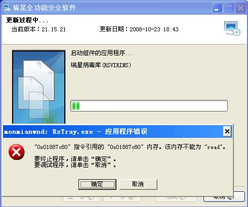 问题现象:今天升级瑞星,升级过程中弹出如图所示提示框,但升级可以正常完成。