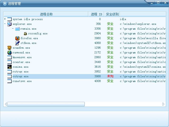 进程信息里瑞星自己的东西的安全级别是未知