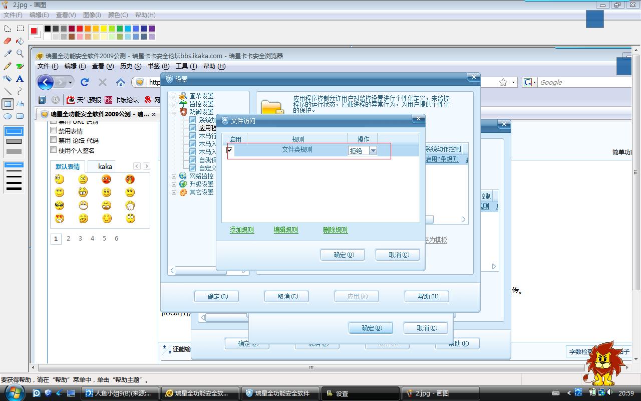 用ris的主防保护了卡卡的文件和阻止了qq新闻的弹出。异常---无效