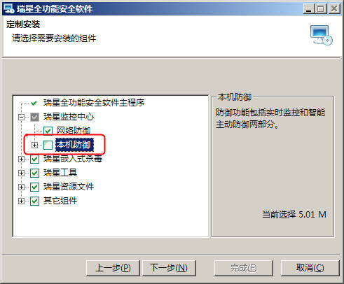 安装的时候只装网络监控,不装本机防御就是单独的防火墙功能了