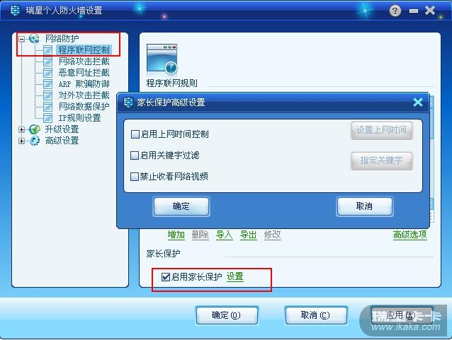 中程序联网控制下的家长保护中的指定上网时间怎么设置?