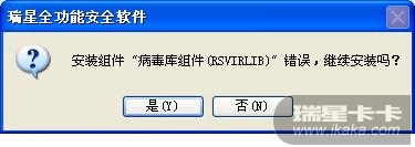 今天把瑞星杀软和墙卸了,换了全功能体验,原因看到图标多了,我还是正版用户,呵呵,免费了。描述哈情况:在安装全功能的时候说病毒库主件错误,跳过安装的,然后升级的时候也出现了,见图,该怎么办?