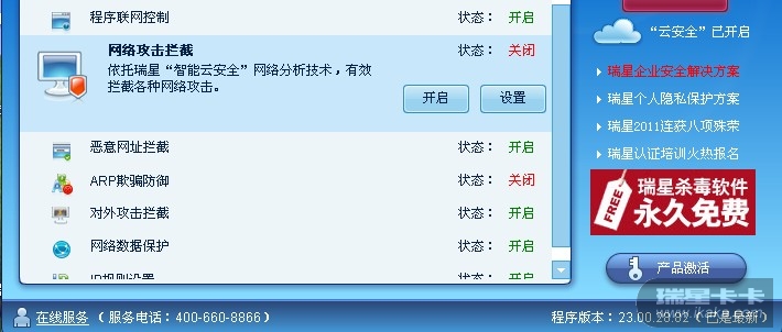 如果仍有异常,请您依次关闭瑞星监控功能判断由哪项功能引起此问题。