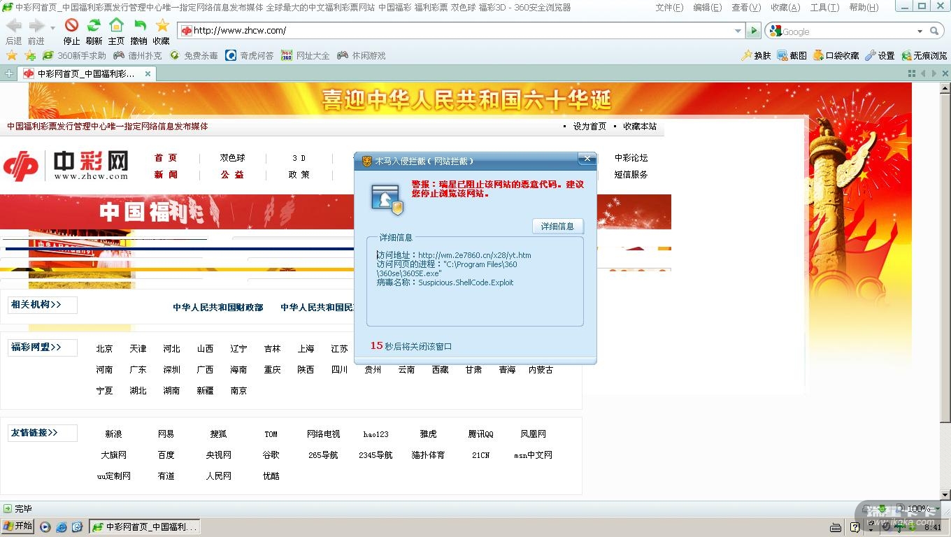 最近几天,全国最大的彩票网:中彩网www.zhcw.com被挂马,请大家浏览的时候小心!