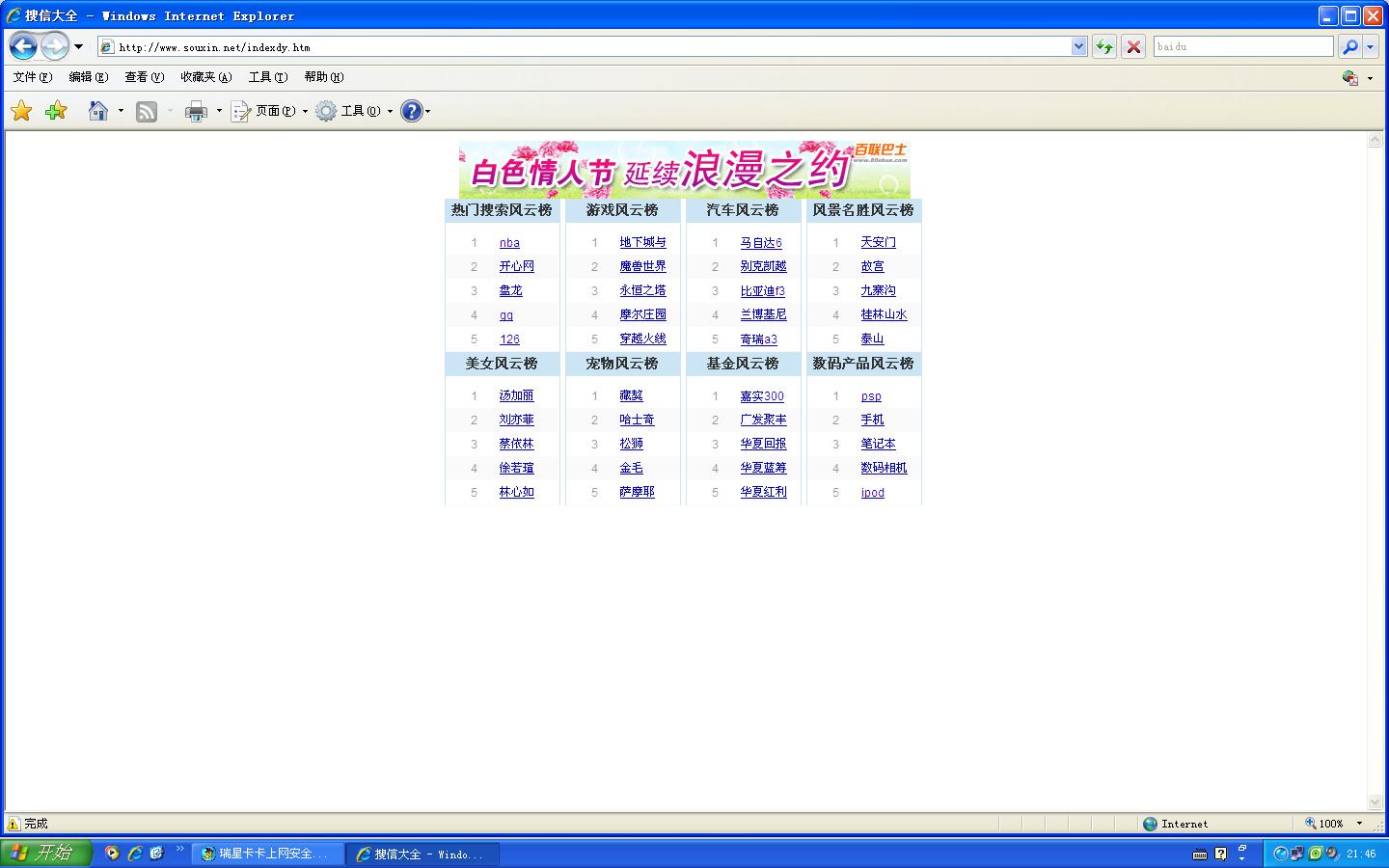 www.souxin.net”之类的;有时可以等一会自动回到所要的网页,有时却需要按返回键才可以回到所要的网页。即使我重装系统也不行,而且也绝无浏览其他不知名的网站,浏览最多的也就是新浪或者优酷了;而且像我这种情况的很多,网上也有反映!希望瑞星发挥专业精神,查出此类网站的性质;贴个图看看,浏览器是谷歌的!