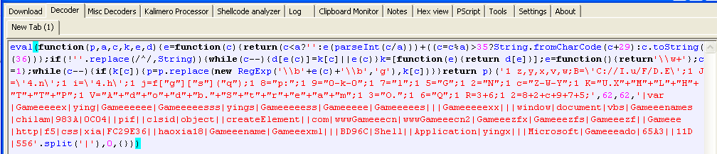 在线解密工具:http://glacierlk.cn/openlab/jm.htm,附件为malzilla(神器),我这里神器是英文版,网上有汉化版,有想使用汉化版的自己百度一下吧 O(∩_∩)O~