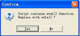 此时会弹出一个确认的对话框,大致内容意思为:此脚本包含eval函数时候替换为evla,点击yes(是),详见截图: