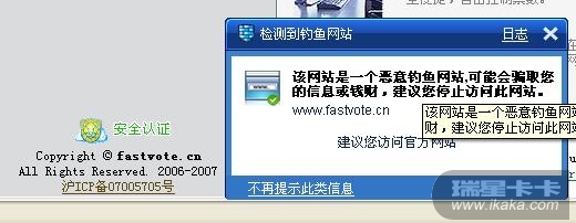 瑞星防火墙误报我的站为钓鱼网站,清除fistemp.db也没用,绝对正规网站,瑞星云安全联盟在线检测是安全的