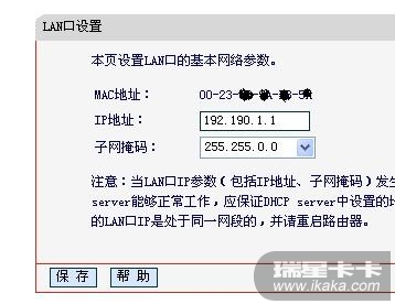 设置完了,按保存,WAN口设置之后,就该回到网络参数的LAN口设置了: