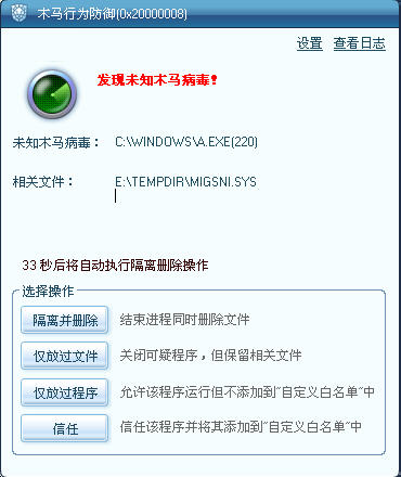 我的瑞星已是最新的!!!点击“删除并隔离” 瑞星进程挂掉了!!!