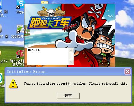 开启瑞星2010 跑跑卡丁车不能初始化(如图)。