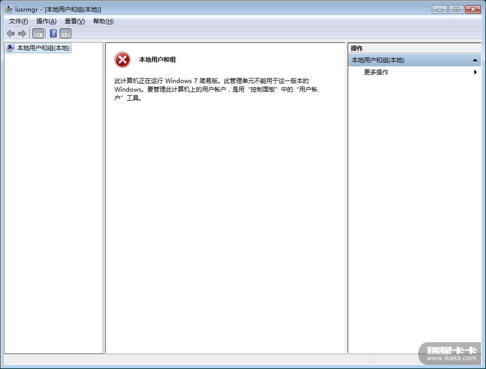 心想可能是Administrator被禁用了,于是想打开本地用户和组,但控制面板里没有此选项,从别的电脑拷回来,也无法运行