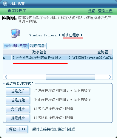 回复:瑞星"模块检查"显示的BUG!