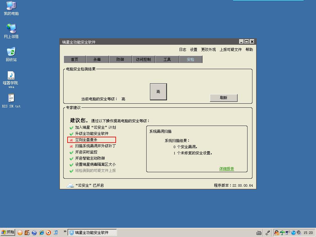 每次程序升级后(非病毒库),都提示没有全盘杀毒