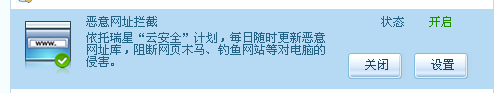 此时,瑞星“恶意网址拦截”是打开的,却没有拦截: