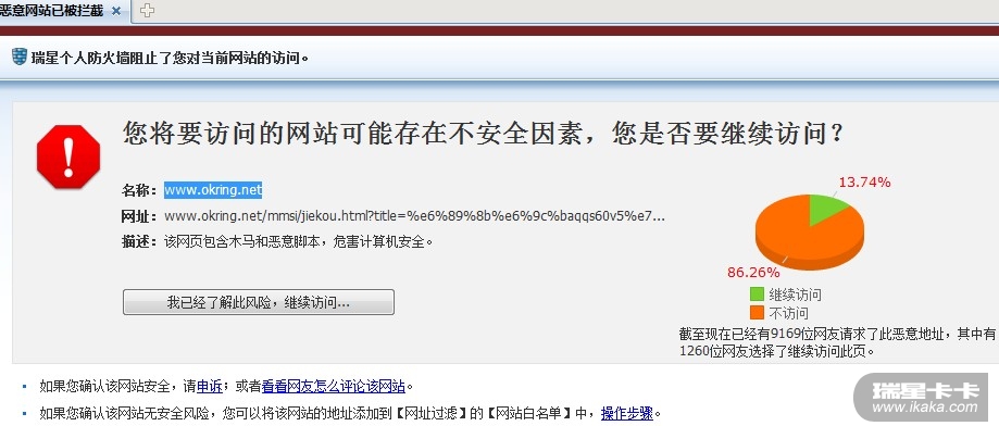 瑞星病毒库版本:22.51.03.01 未拦截该网站呀,卡卡网站吧也未显示该网站被挂马呀。