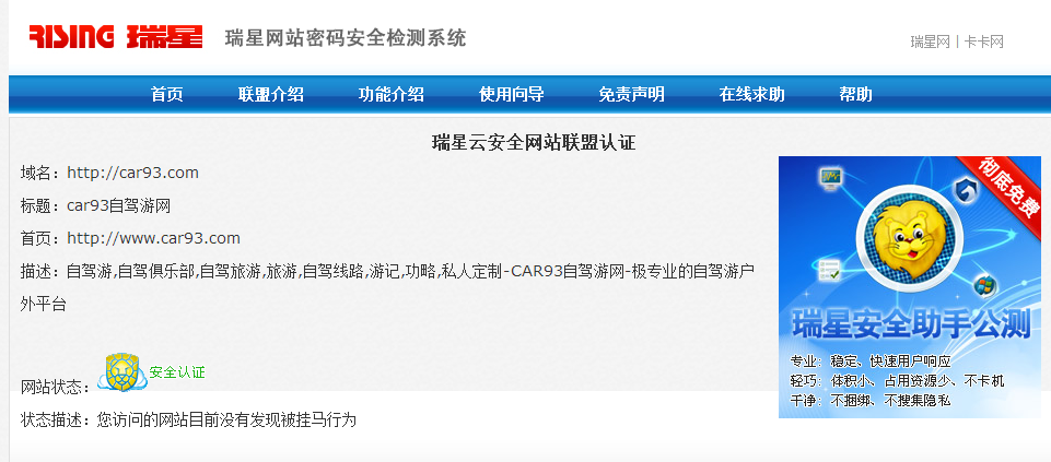 瑞星云安全网站联盟专版