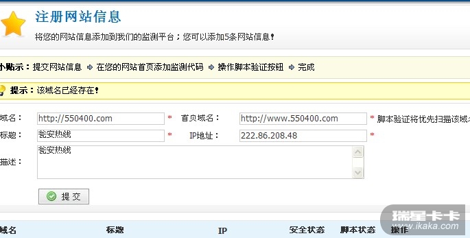 回复:管理员你好,我新注册了一个账号 获取代码的过程中 提示我的域名也存在,怎么不能呢