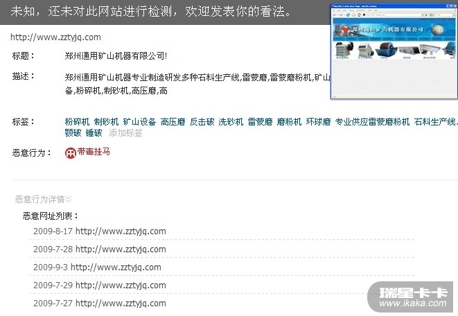 www.zztyjq.com,09年的时候显示被挂马,这个问题早就解决过了。