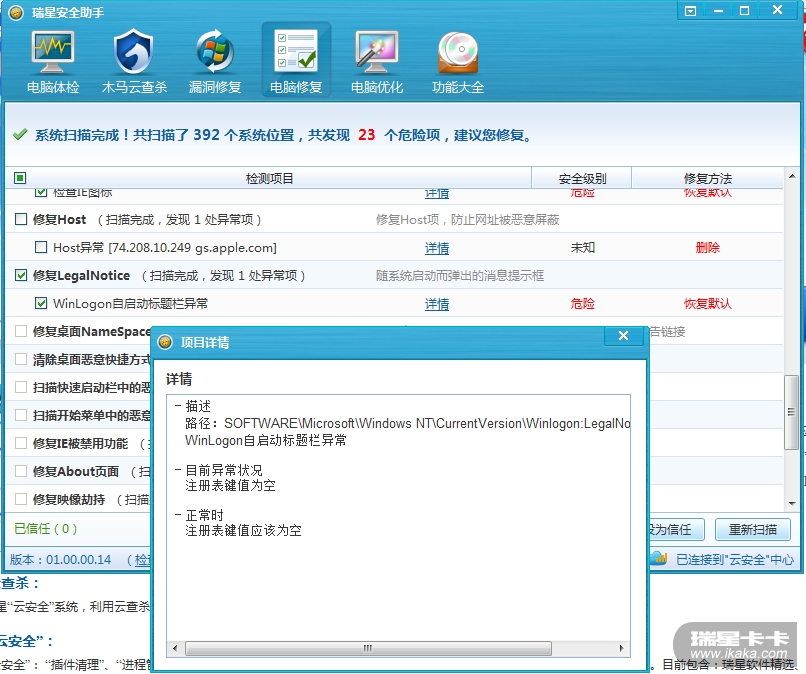 提示出的问题是当前注册表键值为空。空也是问题吗??嗯??另外,怎么建议修复内容为简直名本身?键值内容=键值名??这修复对不对啊??我没敢点。。。