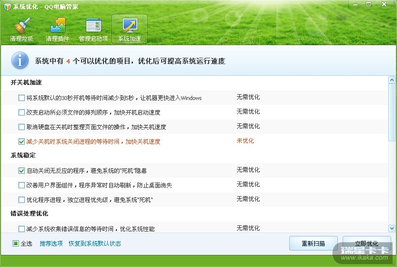 既然 瑞星出了 开机加速-----通过禁用开机项 和 服务项 实现 开机加速,建议通过修改 注册表 加快系统速度